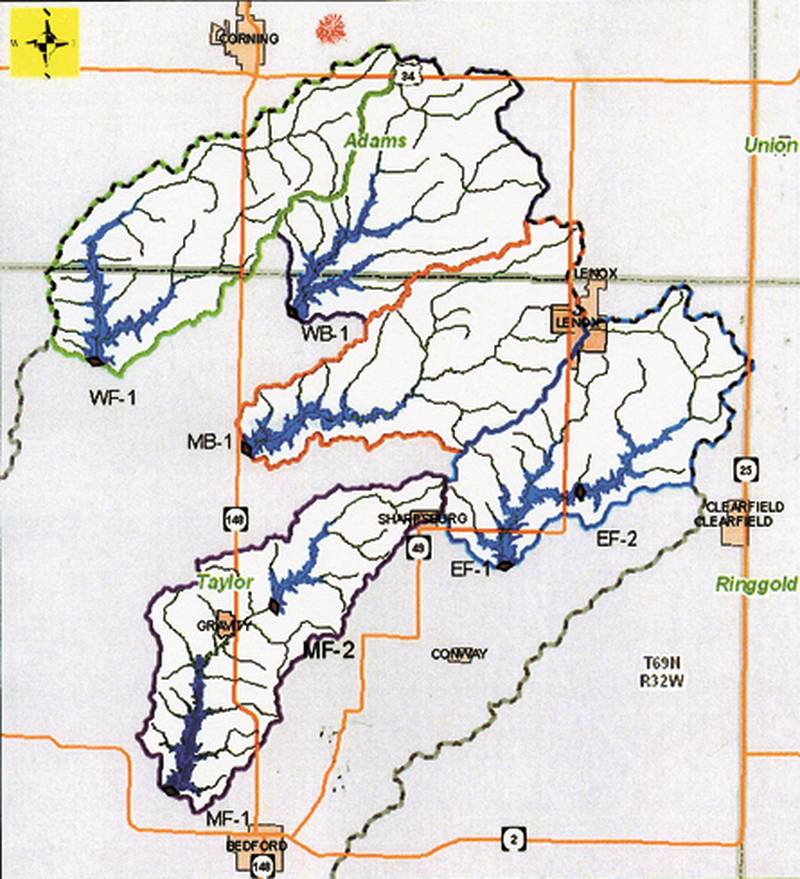Although any of the seven lake locations within the watershed are still a possibility for the lake’s construction, talks focused on two specific sites. The locations referred to as MB-1, which is southwest of Lenox and north of Gravity to the east of Highway 148, and MF-1, located northwest of Bedford and south of Gravity to the west of Highway 148, are the clear-cut favorites.