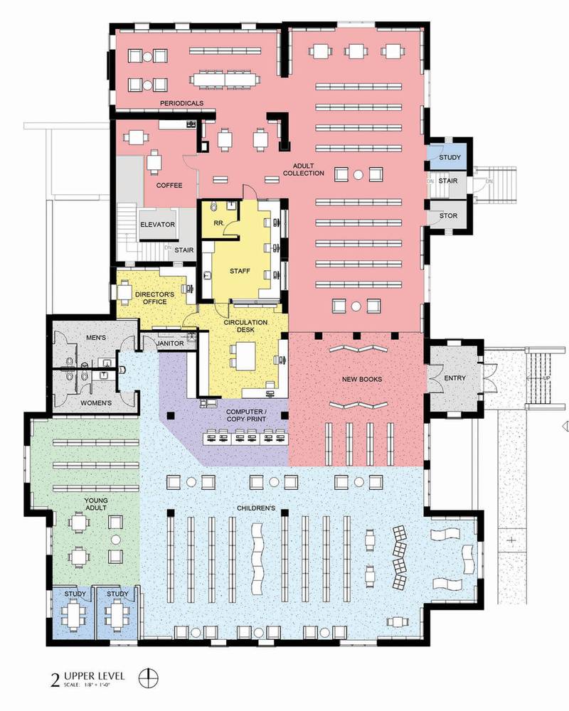 The second floor will hold the library’s entire print collection and small meeting spaces.