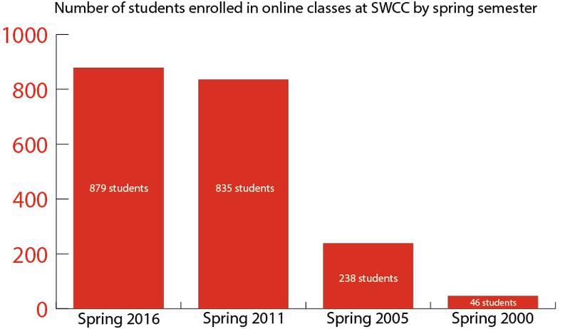 This semester, online credits make up nearly 30 percent of the total credit hours students are collectively enrolled in at SWCC.