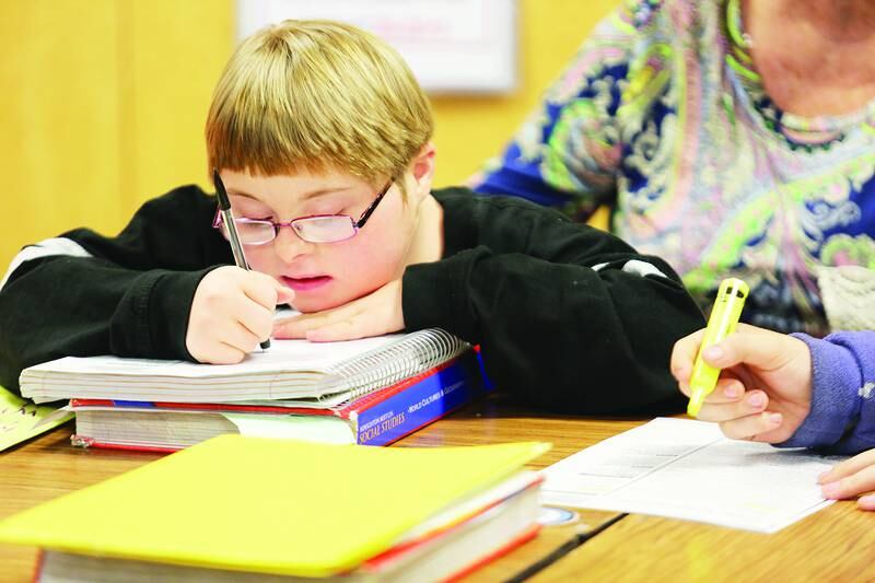 Working in pairs to complete an activity, Tessa’s partner was Zoey Larsen. With Tessa’s chin pressed to her book as she read, her sharp concentration was intermixed with a few giggles and grins.