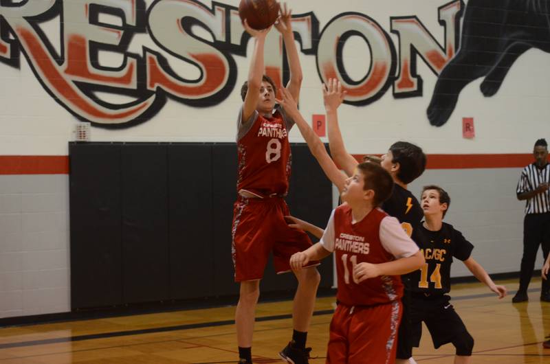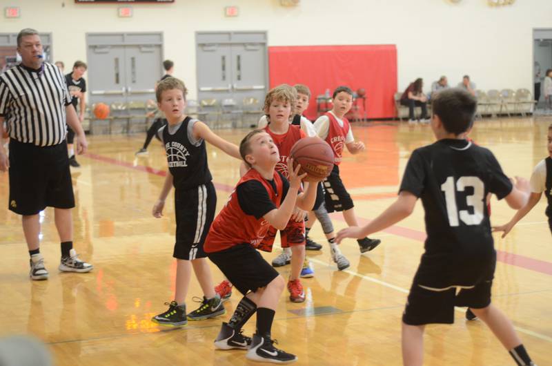 Tourney champs: This Creston team placed first in the sixth-grade division of the Creston Basketball Association tournament Saturday, defeating Johnston, 36-33. Members of the team are, from left in front, Anthony Eblen, Dillon Starlin, Conner Wiley, Cael Turner and Dylan Hoepker. Back row, Sam Henry, Dylan Calvin, Sterling Sharp, Quinten Fuller and McCoy Haines. Coaches were Brian Haines and Travis Turner. Another Creston team placed fourth in the division.