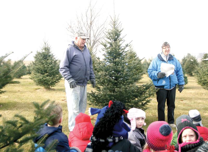 The Bassetts began growing Christmas trees 30 years ago and reported to a group of Nodaway Valley first-graders, who visited the farm on a field trip last Friday, that there were nearly 4,000 trees at Harmony at one time on their four-acre parcel.
