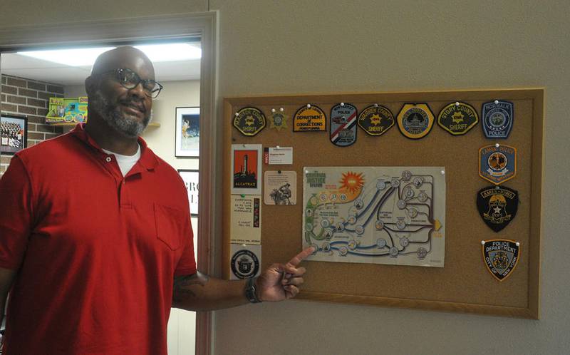 His office at SWCC paints a picture of his philosophy, displaying links between popular culture, real life and criminal justice. A shelf full of books and memorabilia gives philosophical snapshots of how criminal justice fits into our daily lives and culture. Three mug shots sit on his wall one of Martin Luther King Jr., another of Johnny Cash and the last is Pablo Escobar.