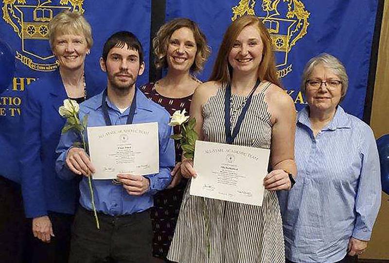 Southwestern Community College students Chase Miner of Leon and Ella Rutherford of Niantic, Illinois, were honored as members of the 2020 All-Iowa Academic Team during a recognition ceremony sponsored by the Phi Theta Kappa Honor Society March 2 at the Embassy Suites in Des Moines.