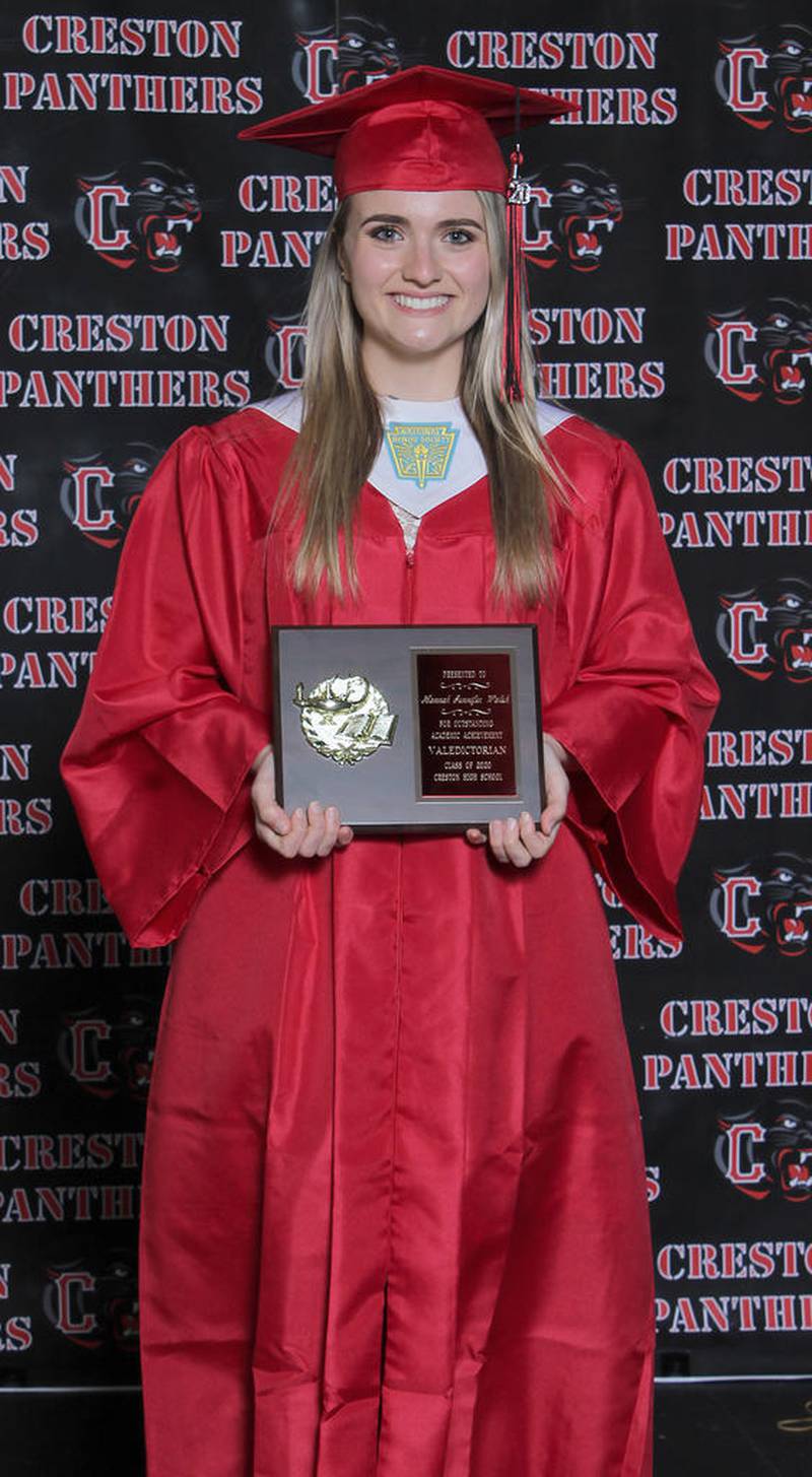 Walsh, 18, of Creston, is the daughter of Jim Walsh and Jennifer Redd. Walsh said when she first entered high school, she didn’t think she would achieve a 4.0 GPA, let alone become a Valedictorian.
