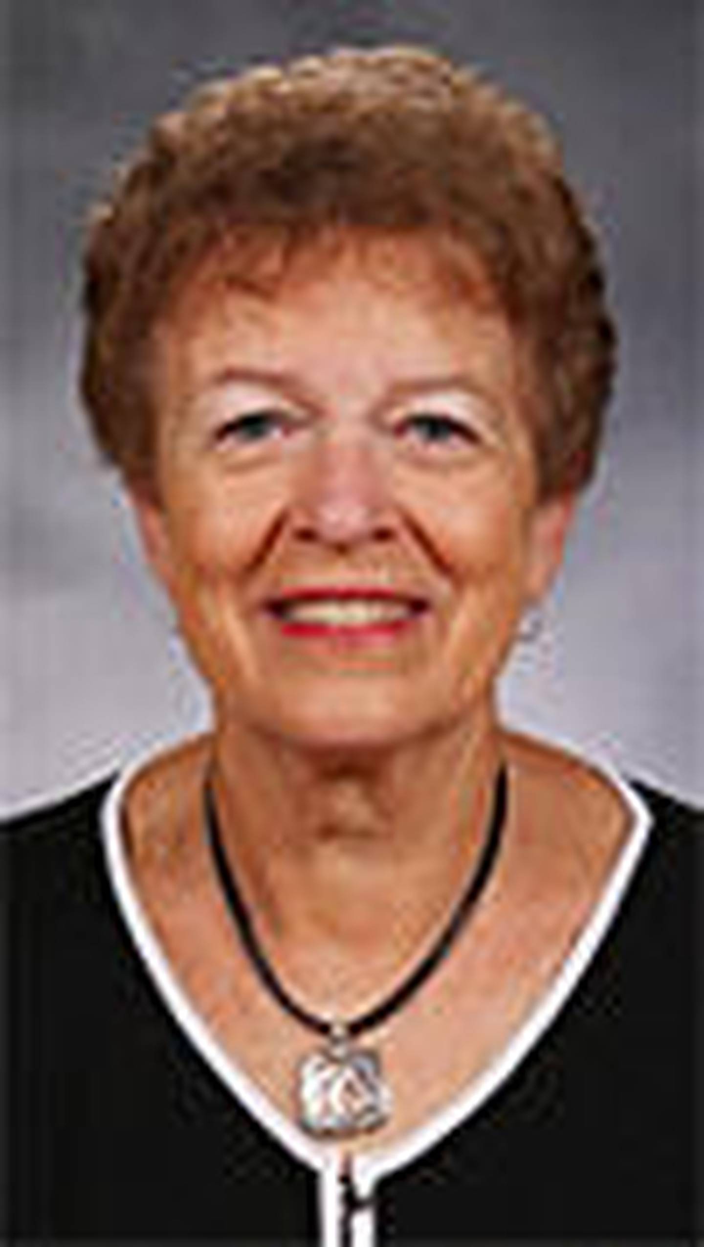 Joanne Bucklin, Creston Community High School secretary, helps senior Grace Root with a transcript request in the office. Bucklin is retiring after working 21 years in the district. (CNA photo)