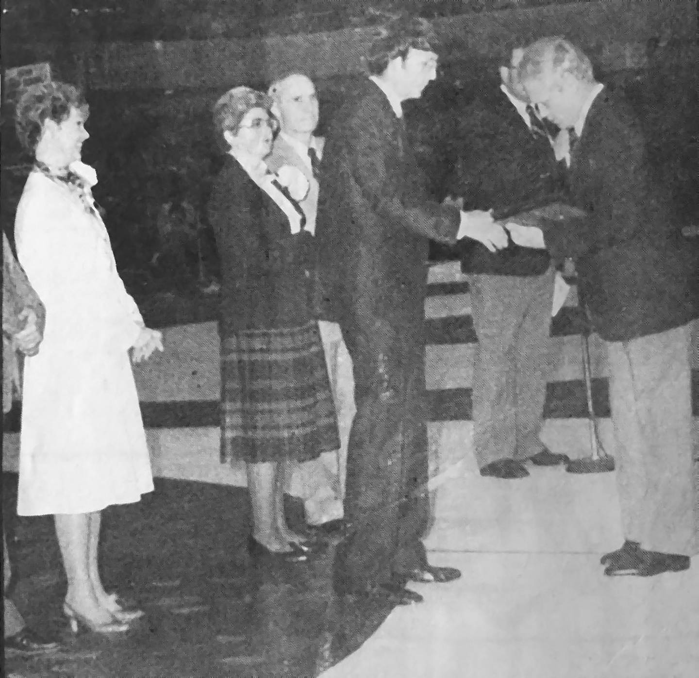 Dr. Larry Goetz receives the Team Doctor Award at the 1983 Iowa State Wrestling Tournament. (CNA file)