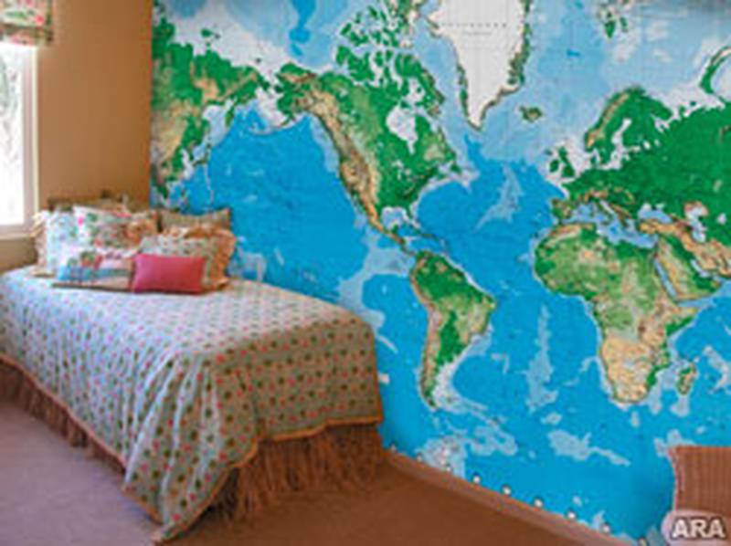 The World Map mural is available by calling (800) 321-1484 or you can buy the map online at www.decorplace.com.