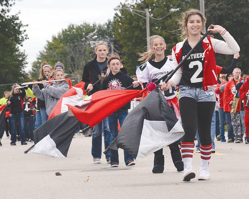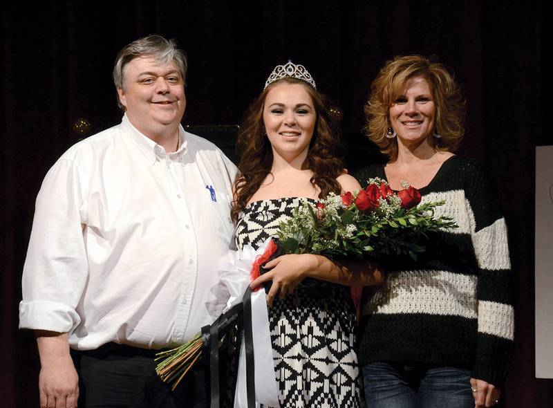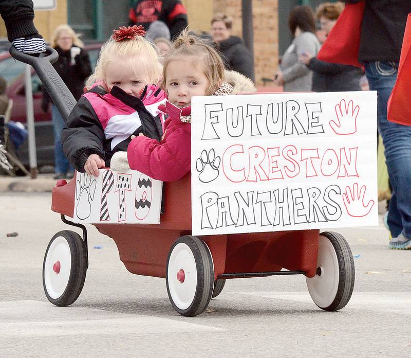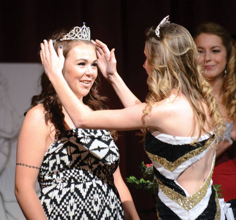 Michelle Powers, last year's homecoming queen, right, crowns 2014 homecoming queen Bree Daggett during ceremonies Friday afternoon inside Creston High School's auditorium. Bree is the daughter of Doug Daggett and Ellen Daggett.