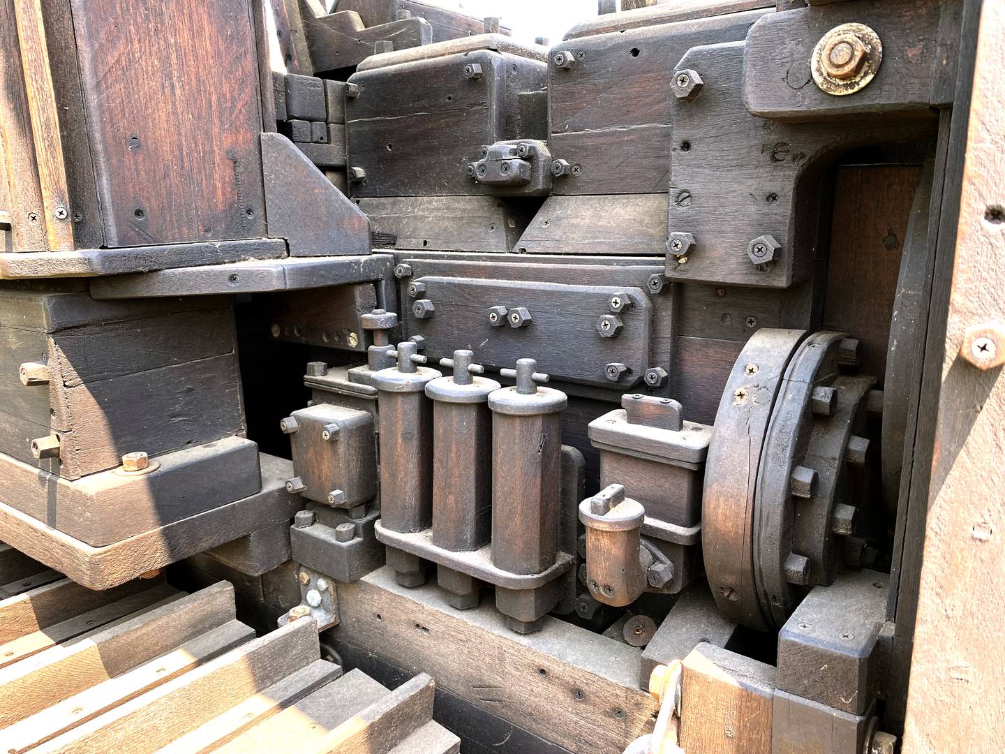 The Caterpillar, which stands approximately 6-feet tall and made to scale, was made by Brotherton from scrap mahogany from casting shipping containers he acquired from his former employer Wellmans, where he worked as a pattern maker for 17 years.