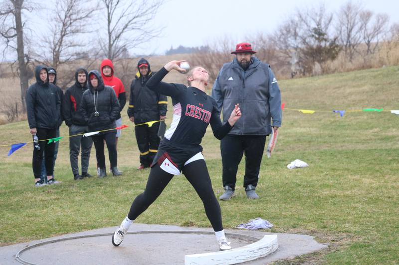 Creston’s field events shined Tuesday with Bri Fields finishing first in discus (105-08) and a second place finish in shot put (31-05.75).